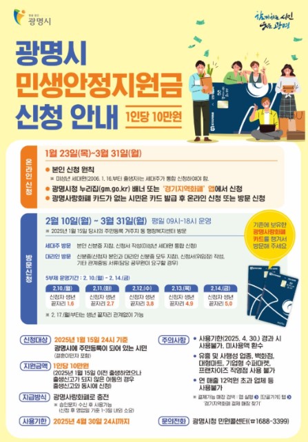 ● 신청 대상 : 광명시에 주민등록이 되어 있는 내국인 및 결혼이민자 (25.1.15일 기준)