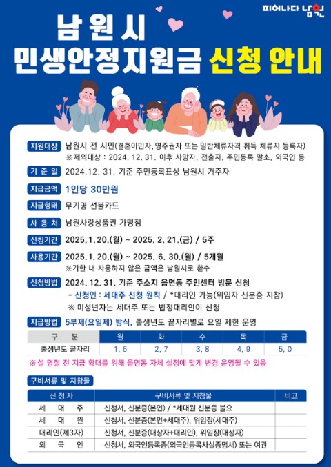 ● 신청 대상 : 남원시 전 시민(24.12.31 기준)